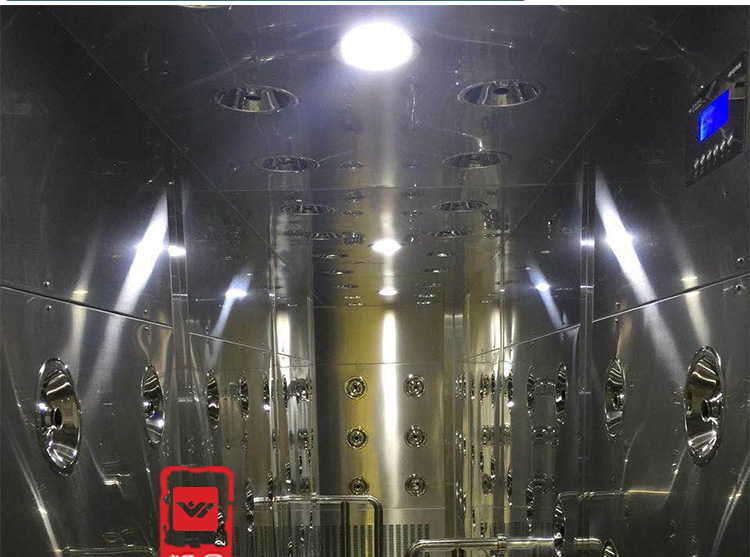 定義:為了減少由于人員進出所帶來的大量塵埃粒子,經(jīng)高效過濾器過濾后的潔凈氣流由可旋轉(zhuǎn)噴嘴從各個方向噴射至人身上,有效而迅速清除塵埃粒子,清除后的塵埃粒子再由初、高效過濾器過濾后重新循環(huán)到風淋區(qū)域內(nèi)。