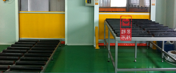 4、快速卷簾門流水線貨淋室(自動(dòng)感應(yīng)控制快速卷簾門),流水線可做成整體一條線,門下降時(shí)接近流水線,也可將流水線分成三部分;