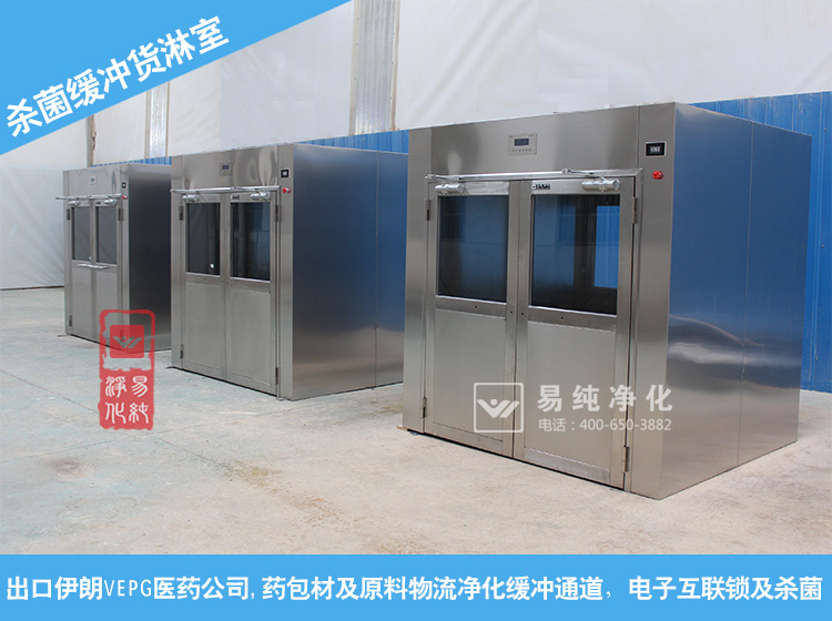 貨淋室從字面理解的意思是為“貨物進行吹淋的風淋室,簡稱貨淋室”。貨淋室是貨物進入潔凈室所必需的通道,它可以減少貨物進出潔凈室所帶來的污染問題。貨淋室的兩道