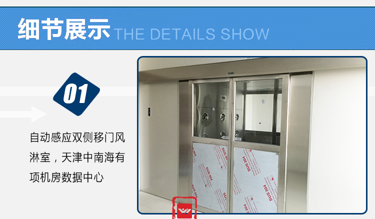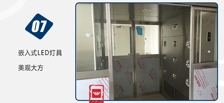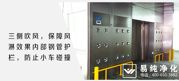 貨淋室門電子互鎖,可以兼起氣閘室的作用,防未被凈化的空氣進入潔凈室,達到有效的凈化效果,經高效過濾器過濾后的潔凈氣流由可旋轉噴嘴從各個方向噴射至物體表面,有效而迅速清除塵埃粒子,帶有塵埃粒子的空氣再由初、高效過濾器過濾后重新循環到風淋區域。